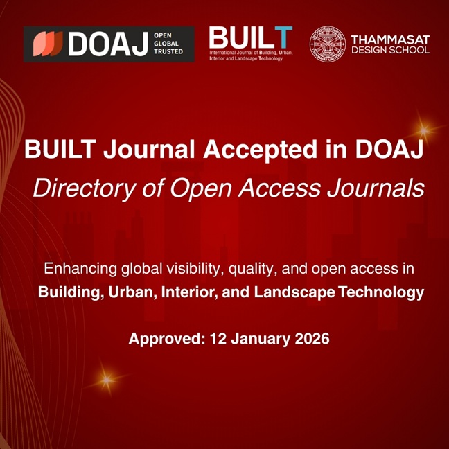 BUILT: International Journal of Building, Urban, Interior and Landscape Technology is pleased to announce that the journal has been officially accepted for inclusion in the Directory of Open Access Journals (DOAJ).