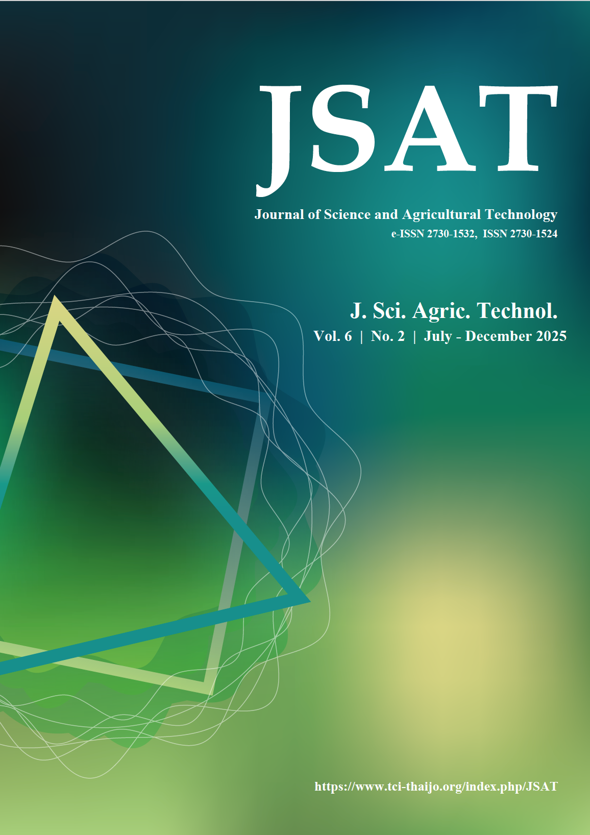 Journal of Science and Agricultural Technology (JSAT) is the international, scholarly, and peer-reviewed journal in the Open Journal System (online) published by the Faculty of Science and Agricultural Technology, Rajamangala University of Technology Lanna, Thailand. The journal is dedicated to publishing original research in sciences and agricultural technology, but not limited to rapid reports, methods, reviews or comments, and short research reviews. The JSAT has been indexed in Google Scholar, Thai Citation Index, and Digital Object Identifier (DOI) under the National Research Council of Thailand.