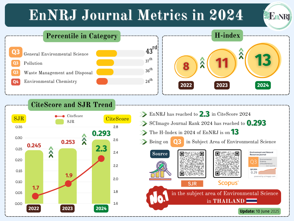 Environment and Natural Resources Journal (EnNRJ) is licensed under a Attribution-NonCommercial 4.0 International (CC BY-NC 4.0)