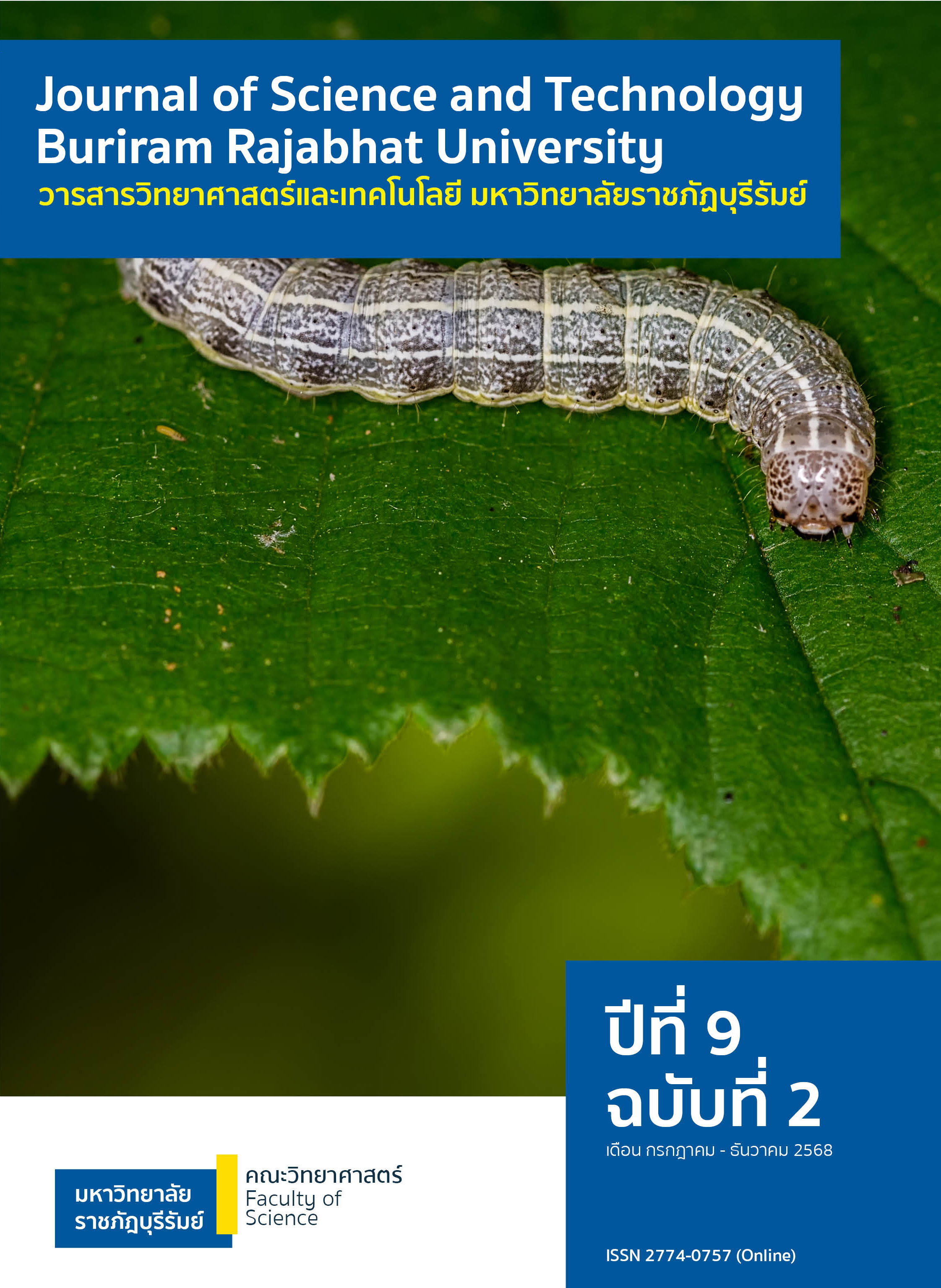 วารสารวิทยาศาสตร์และเทคโนโลยี มหาวิทยาลัยราชภัฏบุรีรัมย์ ปีที่ 9 ฉบับที่ 2 เดือนกรกฎาคม-ธันวาคม 2568 ขอเรียนเชิญ อาจารย์ นักวิจัย นักศึกษา ตลอดจนผู้สนใจ ส่งบทความวิชาการและบทความวิจัยตีพิมพ์ในรูปแบบออนไล์ โดยสามารถดูรายละเอียดได้ที่ https://ph02.tci-thaijo.org/index.php/scibru/about/submissions